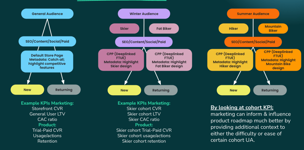 Now, if your product team is as sophisticated as you are on the marketing side, they can track users coming from these CPP/CSL and measure the impact on these cohorts’ KPIs.